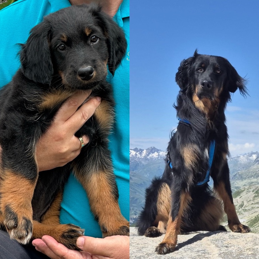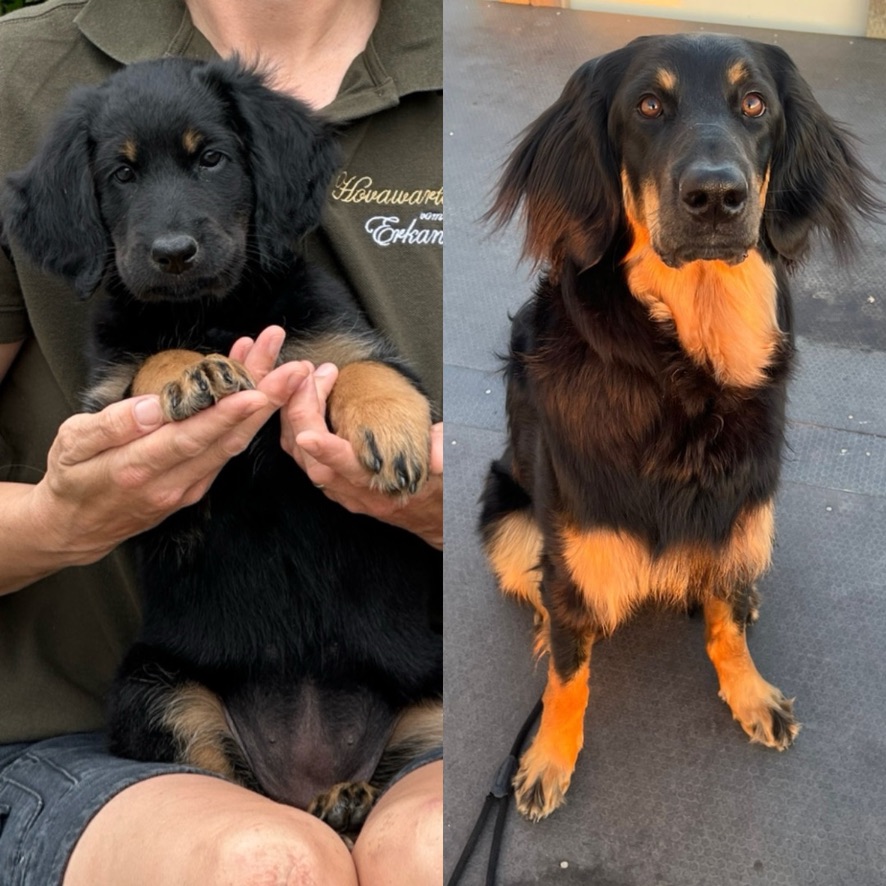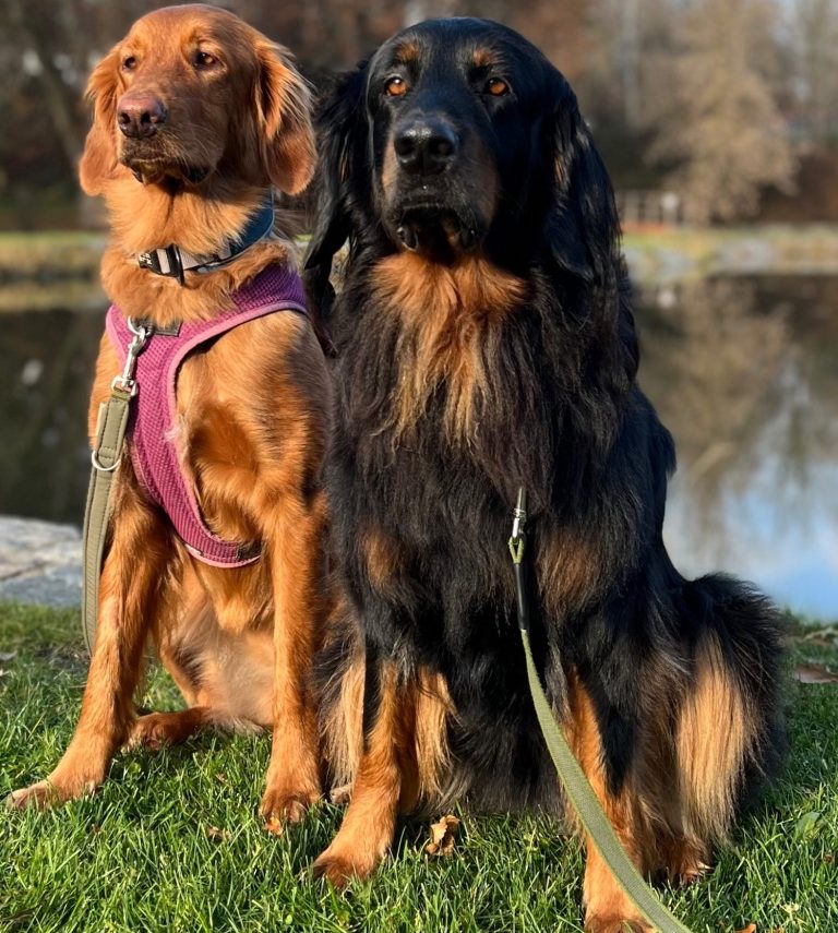 Sehr schön finden wir das Leben mit zwei Hovis. Betty zeigt ihrer temperamentvollen Tochter, Asuna, mit großer Souveränität, wer der Chef ist. Asuna bleibt hartnäckig sie herauszufordern, ob beim Herrchen-Begrüßen oder beim Ärgern auf den gemeinsamen Gassi-Runden. Asuna ist auf der "Kurz- und Mittelsrecke" schon schneller als Betty. Betty jedoch gewiefter und schwerer (aktuell 33 kg), ein Stoß von Betty in vollem Lauf reicht um Asuna (aktuell 25 kg) in die Schranken zu weisen.