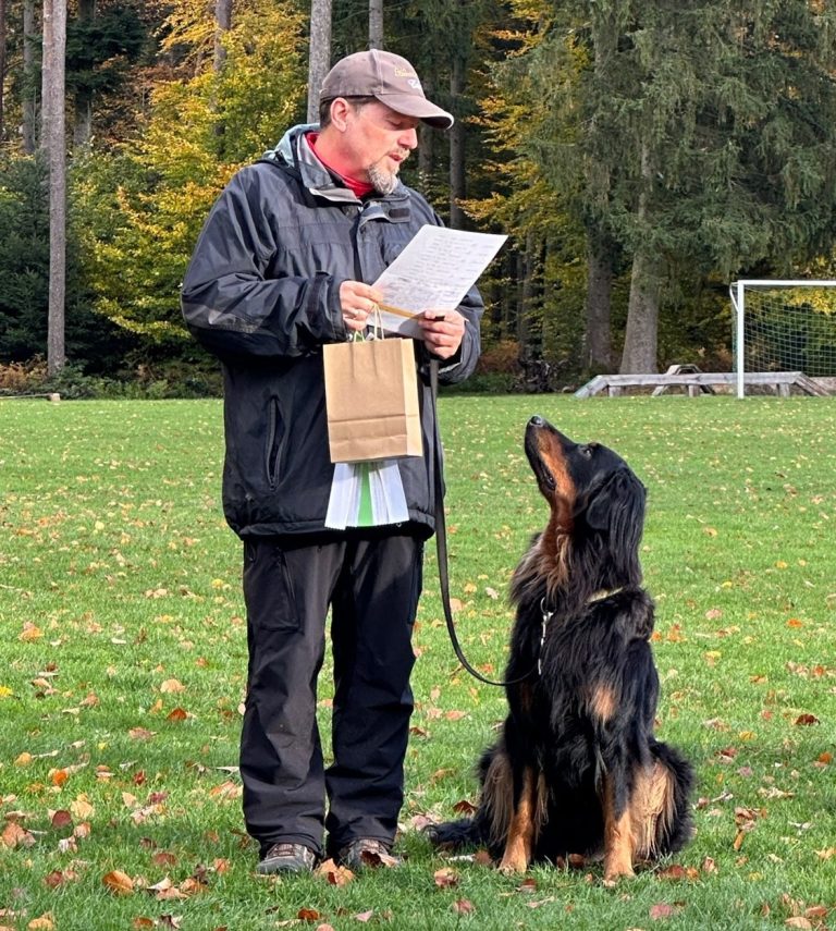 Betty hat am Samstag, den 25.10.2025, die Fährtenprüfung mit 96 Punkten -vorzüglich- bestanden. Und das unter erschwerten Bedingungen durch Regen und Wind während der Prüfung. Ein schöner Erfolg für das jahrelange Training.